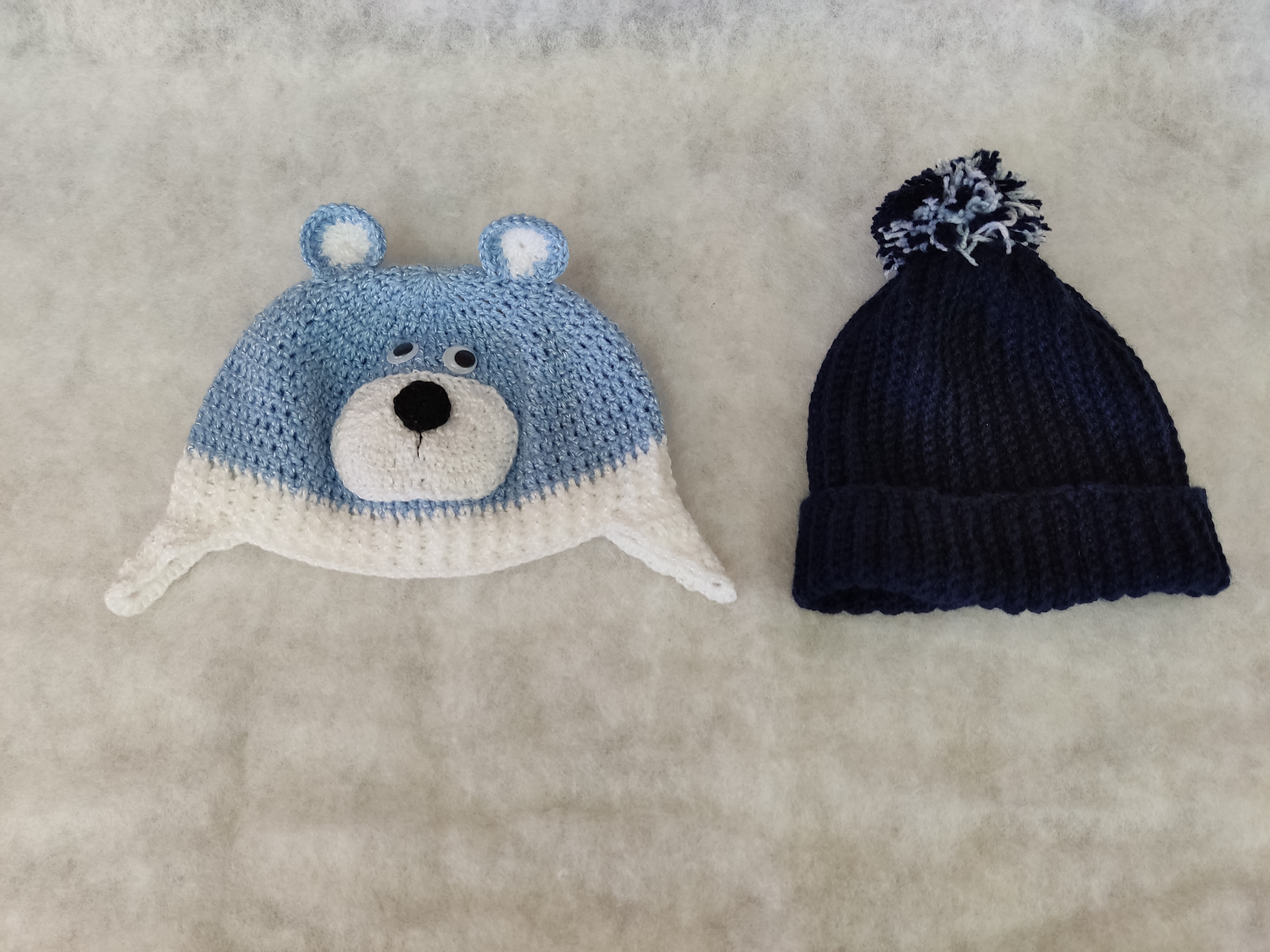 Gorrinhos em crochê no fio Amore Baby matiz e branco com pompom para seu baby de 6 a 9 meses - R$ 25,00 cada (Vendido)
