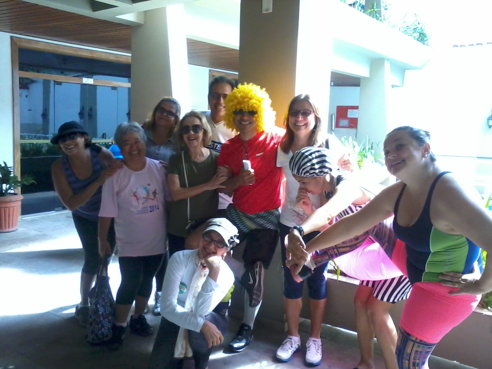 Em seguida, o professor convidou a todos que estavam com as faixas (selecionando grupos por cores), a se apresentarem na quadra, para uma sequência de "zumba", uma das muitas atividades que aconteceriam a partir daquele momento.